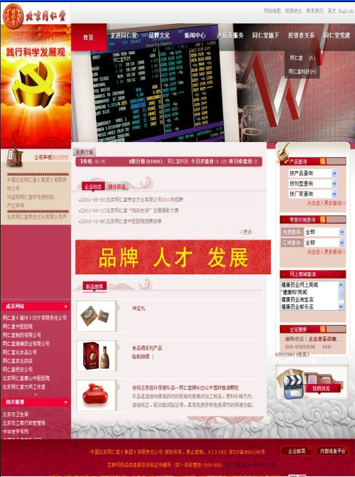 北京同仁堂是中藥行業著名的老字號,創建于清康熙八年(1669年),自雍正元年(1723年)正式供奉清皇宮御藥房用藥,歷經八代皇帝,長達188年。歷代同仁堂人恪守“炮制雖繁必不敢省人工 品味雖貴必不敢減物力”的傳統古訓,樹立“修合無人見 存心有天知”的自律意識,確保了同仁堂金字招牌的長盛不衰。其產品以“配方獨特、選料上乘、工藝精湛、療效顯著”而享譽海內外,產品行銷40多個國家和地區。