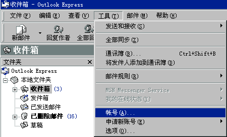 2.依次單擊"工具->帳號"菜單項(xiàng),打開"Internet 帳號"窗口;